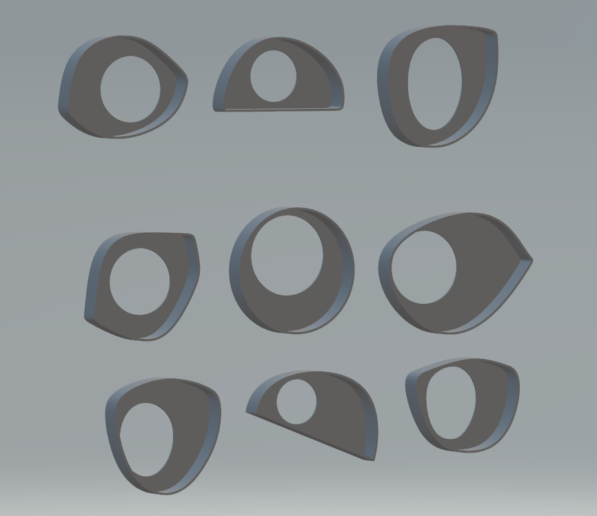 Have your own 3D printer, but no eyes for your fursuit head? No modelling necessary - come grab a set of fursuit eye blanks, ready for you to copy, scale and print! You also get resale rights to produce these on Etsy etc! Each eye blank has an aperture of about 5cm, and each blank has been modelled by me with a variety of shapes!
